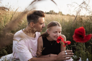 Am liebsten machen wir das immer individuell im persönlichen Gespräch aus. Je nach Lichtstimmung, Hauttyp und Shootingart passen wir den Stil der Kleidung etwas an. Ihr dürft aber natürlich immer gerne eure Lieblingsoutfits mitbringen. Es gibt auch eine kleine Leihgarderobe für Frauen, je nach Größe ist da vielleicht auch etwas für euch dabei.